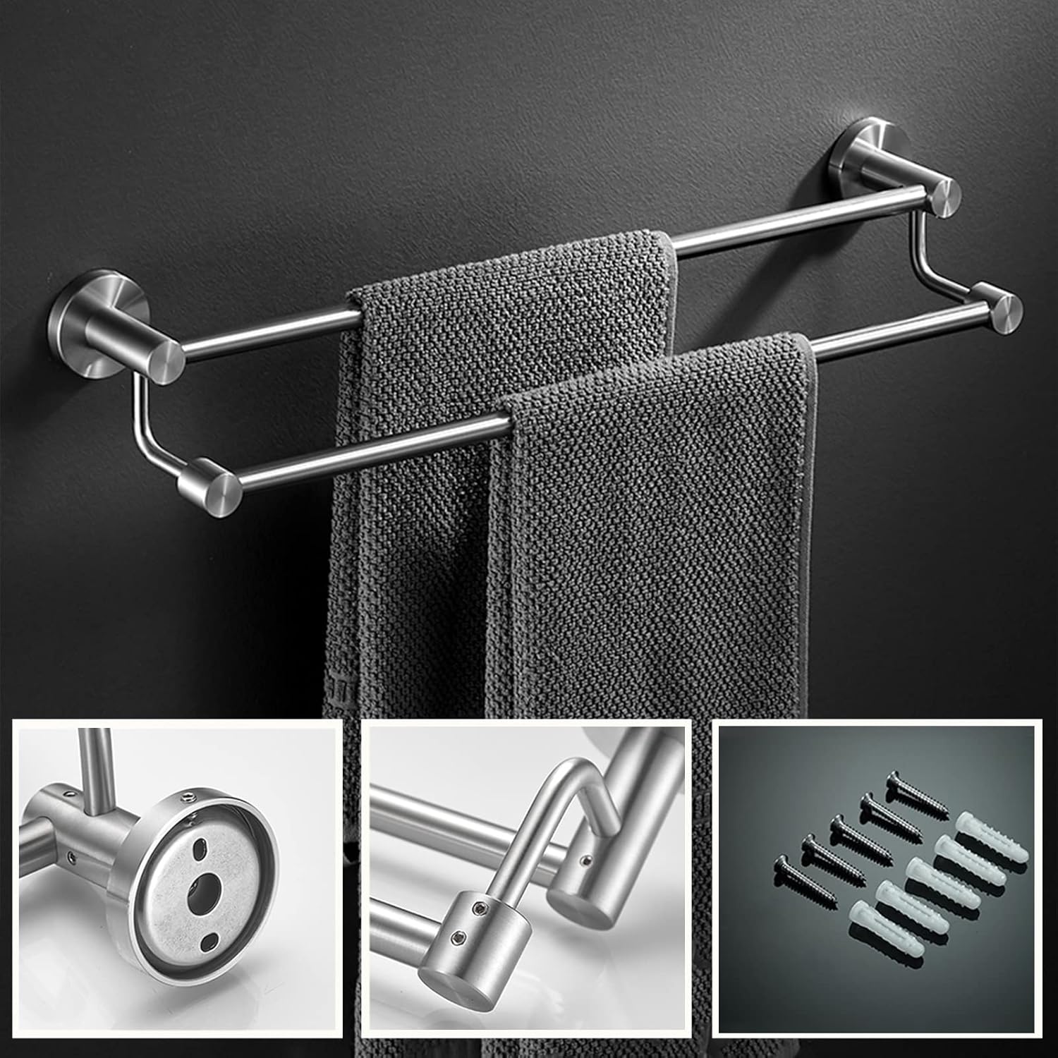 - Kitchen hook rail without drilling with 10 hooks, movable - Stainless steel kitchen roll holder, rustproof and scratch-resistant, durable. - Kitchen roll holder without drilling, practical self-adhesive roll holder - Rod for kitchen utensils without drilling, space-saving wall pot holder - 2 installation methods ( adhesive or screw mounting ), rod for kitchen utensils Specification Name:Multifunctional shelf Material: 201 stainless steel Processing technique: plic injection moulding Style: Modern Simple Colour: gunmetal grey Size: 60 * 9 * 9 cm Applications: Dispenser for kitchen paper, Ideal for your cookware, Hanging bathroom bar, Living room decoration, Behind bedroom door Scope of delivery: 1 * Hanging bar kitchen Without drilling 1 * Adhesive 4 * self-drilling screws
