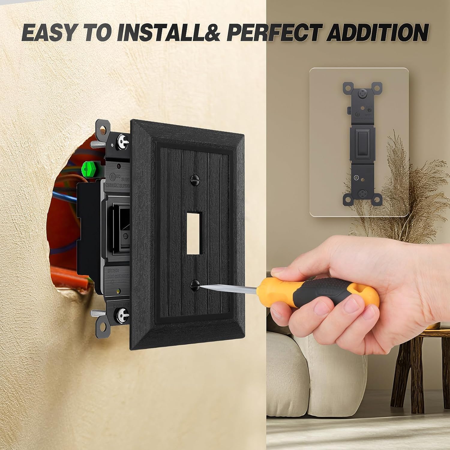 | Included Components | 8 Pack Mid-Size Toggle Black Light Switch Cover Plates and Screws |
