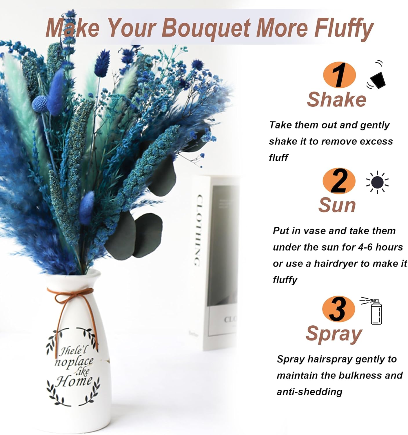Acfruits Blue Natural Dried Pampas Grass Bouquet 17 Inch, Faux Pampas Grass Large Fluffy 27.6Inch Tall 6Pcs