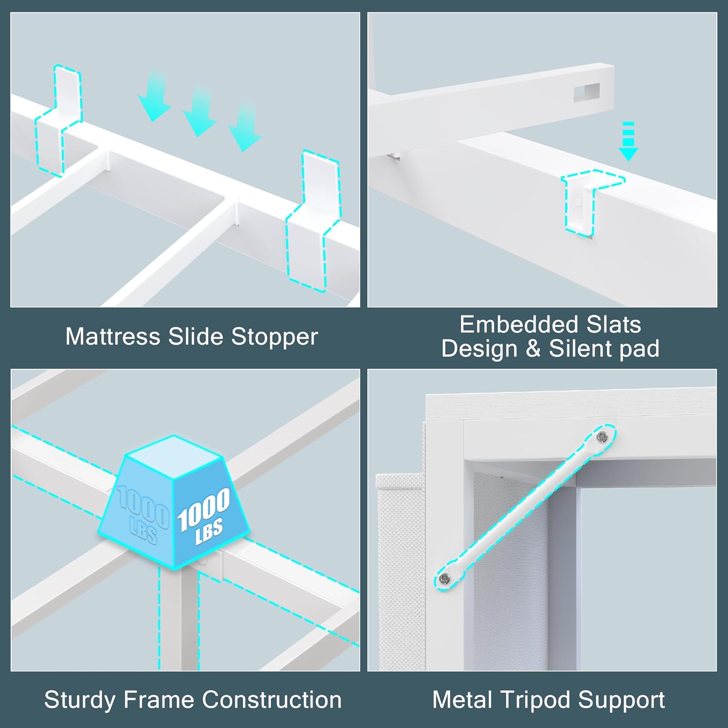 | Additional Features | Colorful LED Lights, Study Desk and Charging Station, Twin Bed Frames with 6 Storage Bookcase, Twin Corner Bed with 4 Storage Drawers and 1 Side Storage Bag, Upholstered Headboard |