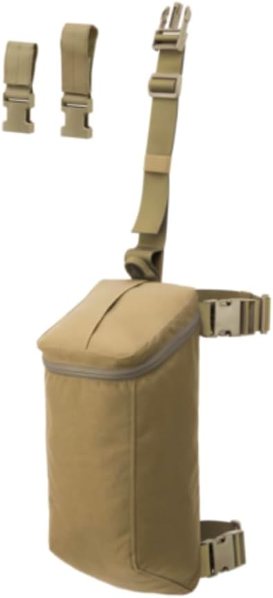Designed for tactical operations involving rappelling, such as on buildings or from a helicopter, this bag can carry up to 30 metres of rappelling rope. The bag is made of durable Cordura 500D fabric and is equipped with an adjustable carrying strap attachable to either a belt or a rappelling harness. The bag can be additionally stabilised using included side straps to comfortably attach it to the leg. The main compartment can be easily accessed and the rope efficiently coiled using a zippered top closure. The rope is pulled from the bag via an elastic-finished opening that ensures both easy access and smooth rope operation. A Velcro-closed loop at the bottom of the bag provides a secure attachment for the rope end. The bottom of the bag is also equipped with three drains to remove water and dirt from the inside.