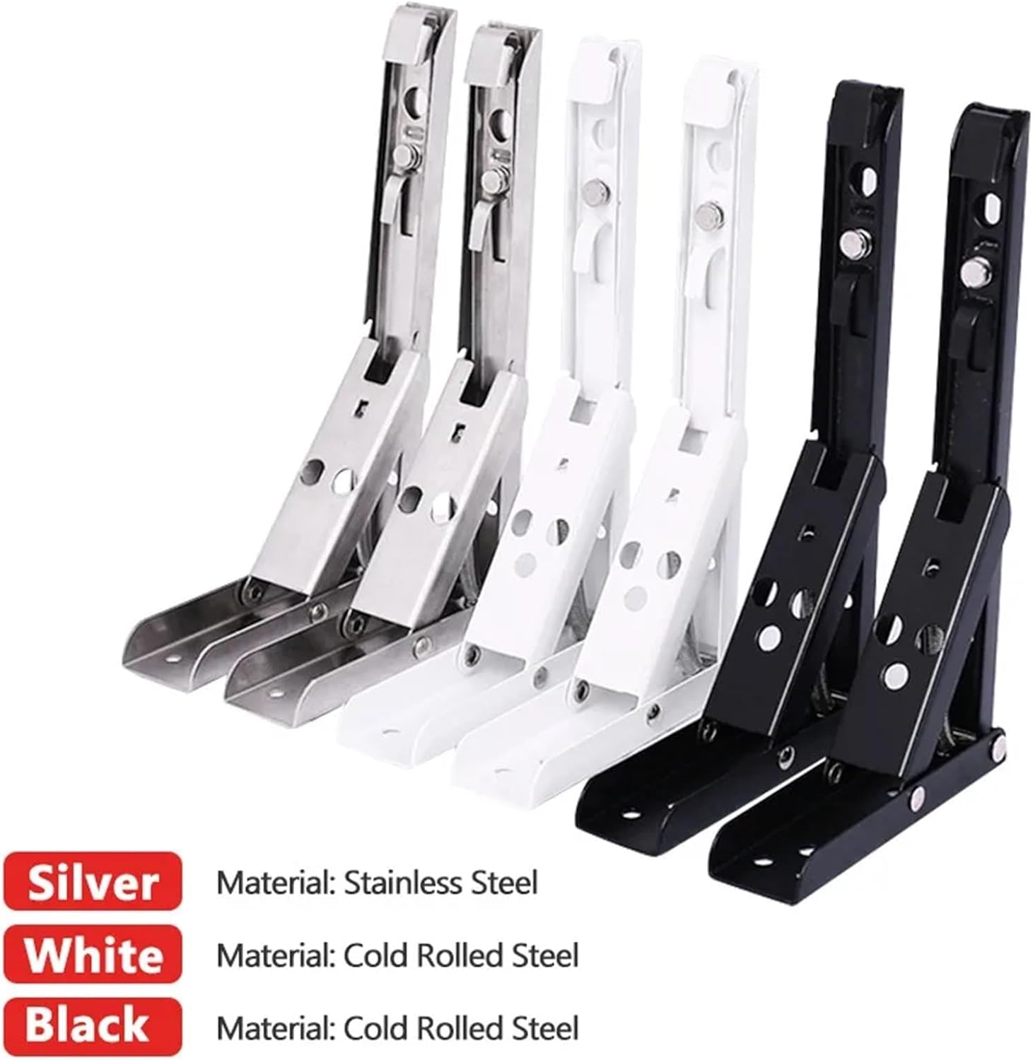 Specifications:Black and white Material: cold rolled steelSilver Material: stainless steel Color: Black / White / SilverSize : 8-14 INCHAdjustable: YesBearing Weight about 60KGPackage Included:2 x Triangular folding bracket with matching screwsis_customized : YesModel Number : 6112Standard or Nonstandard : StandardStructure : Triangle BracketDIY Supplies : MetalworkingMaterial : Stainless SteelUse : Shelf BracketSize : 8-14 inchColor : White / Black / SilverQuantity : 2PCSScrews : IncludedType : Triangle Folding Angle Bracket Adjustable Wall Mounted Shelf BracketBearing Weight : about 60KG