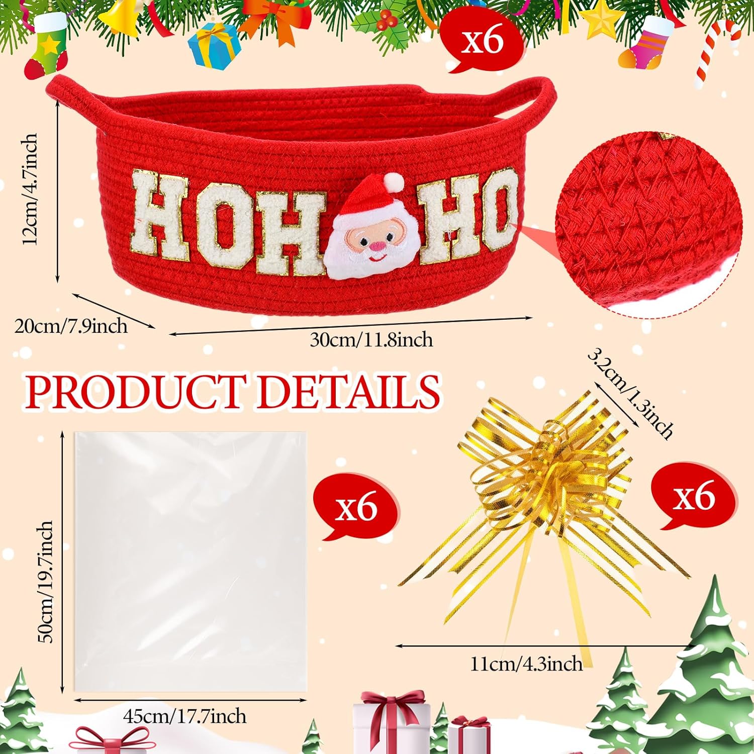 Features: For Gift & Storage: This basket itself could be used as a gift too, and it is easy to storage itself. It could be folded and saves much space in your room when you do not need it. More than Gift Basket: This cotton rope basket is more than a gift basket itself, it could be also used as a nice storage basket, put little baby's stuff inside, or used as a toy basket, a small laundry basket, or even a pet house. It definitely could help to keep the room organized. Specifications: Material: made of cotton rope, plastic Color: red and white Size: Cotton rope basket: about 30x20x12cm/ 11.8x7.9x4.7inch. Bag: about 5cm/17.7inch x 50cm/19.7inch Package includes: 6 x Christmas Empty Baskets. 6 x Transparent gift bags. 6 x Pull Flower Ribbon. Notes: Manual measurement, please allow slight errors on size. The color may exist a slight difference due to different screen displays