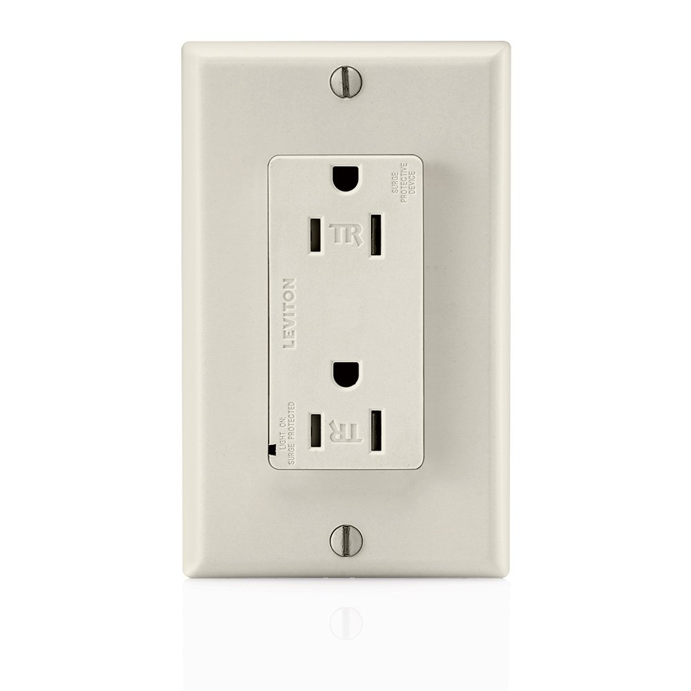 Product Description DUPLEX TYPE; GRAY COLOR; 5-20R CONFIGURATION; 3 WIRE(S); COMMERCIAL, SPECIFICATION GRADE; UL 498, UL 1449, CSA C22.2, NOM 057 APPROVAL; 125 V VOLTAGE RATING; 20 AMPERE CURRENT RATING; SELF-GROUNDING; 2 POLE(S); BACK, SIDE WIRING From the Manufacturer As a pioneer in the electrical device industry, Leviton is once again the first to introduce Tamper-Resistant versions of our Surge Protection Receptacles. These devices are fully compliant with the NEC 2008 and UL 1449 3rd edition, so you can rest assured that your equipment is protected. The low cost of these receptacles, combined with their ease of installation, means they can be placed anywhere you have a normal electrical outlet. So with a small investment, you have the assurance that your equipment is well protected, whether it's a heart monitor in the emergency room or a computer in your office. 20 Amp, 125 Volt, Tamper Resistant, Decora (R) Plus Duplex Surge Suppressor Receptacle, Straight Blade, Commercial , Self Grounding, Gray. Decora is a registered trademark of Leviton Mfg. Co., Inc.