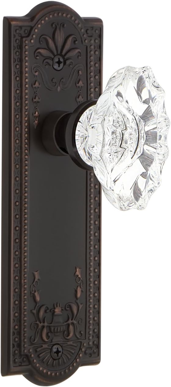 The meadows plate, with its intricate beaded detailing and botanical flourishes, creates an inspired design theme. Add our Chateau crystal door knob, with its distinctive shape and brilliant sparkle, this unique oval crystal door knob adds an elegant accent to any door. All Nostalgic Warehouse door knobs are mounted on a solid (not plated) forged brass base for durability and beauty.