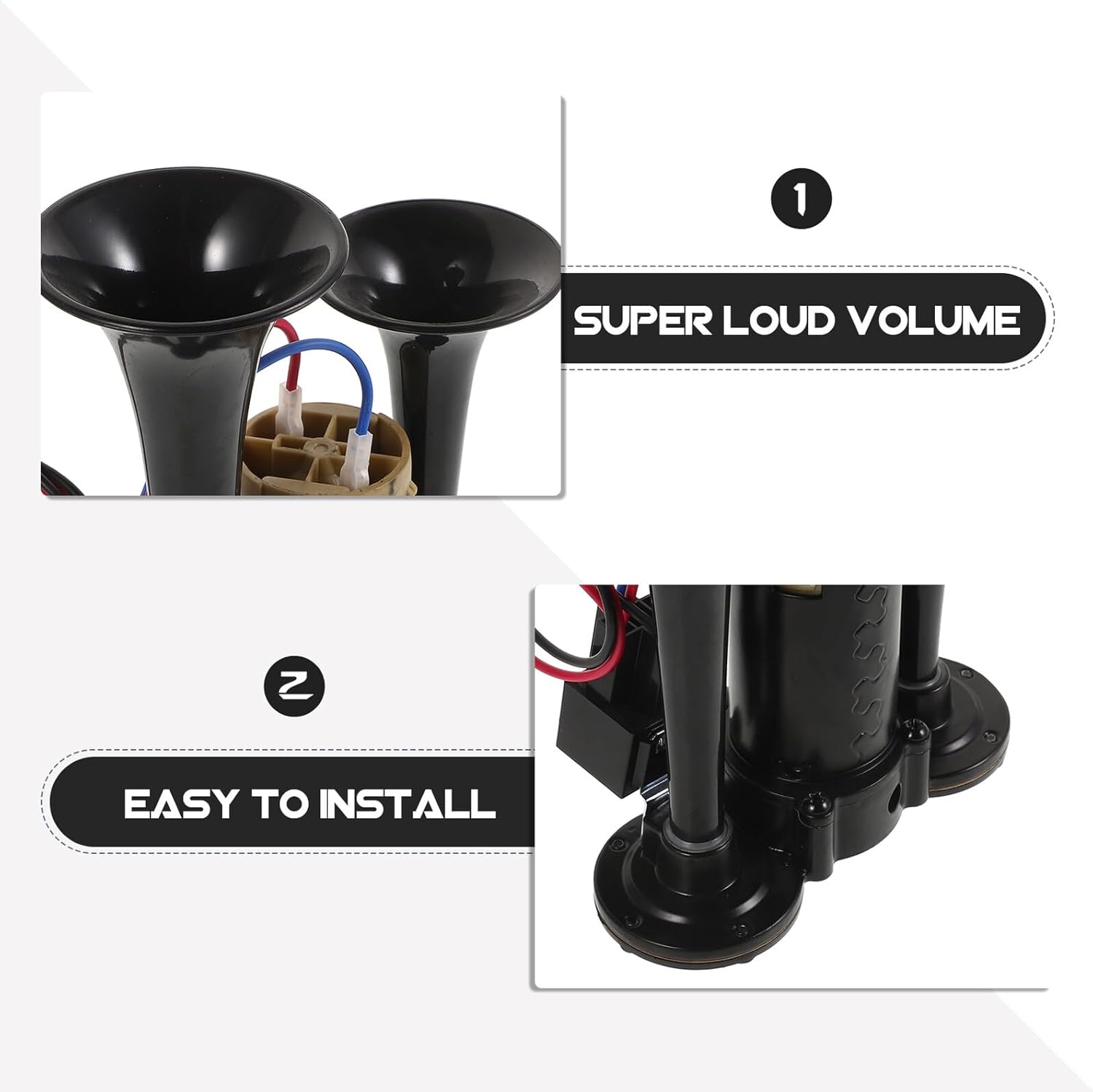 Package List 1 horn Features -For vehicles: ideal for vehicles, this horn adds a unique sound to your vehicle, making it stand out dual silver horn -Color:Black -High compatibility: this compatible with a wide range of vehicle brands and models, meeting the diverse needs of different vehicle owners air horn valve -Integrated design: the integrated design makes installation and usage convenient, suitable for various vehicle types including cars, trucks, and motorcycles car horn -Material:Zinc alloy, ABS -Product Info:Electric air speaker -Electric air horn: utilizing an electric design, this horn eliminates the need for an additional , making it more convenient and reliable air horn kit -Size:20.50X15.50X8.00cm/8.06X6.09X3.14in -Super loud volume: with a high volume of 135 decibels, this horn ensures your vehicle gets noticed on the road, enhancing safety and awareness airhorn for boatGoods Informationair horn for car Easy to install, this compatible with a wide range of vehicles, making it a versatile choice for enhancing your vehicle's safety and audibility.car horn kit Ideal for vehicle modifications, it ensures your presence is known on the road.air pressure trumpets This integrated electric air designed for cars, trucks, and motorcycles, delivering an impressive 135 decibels of sound