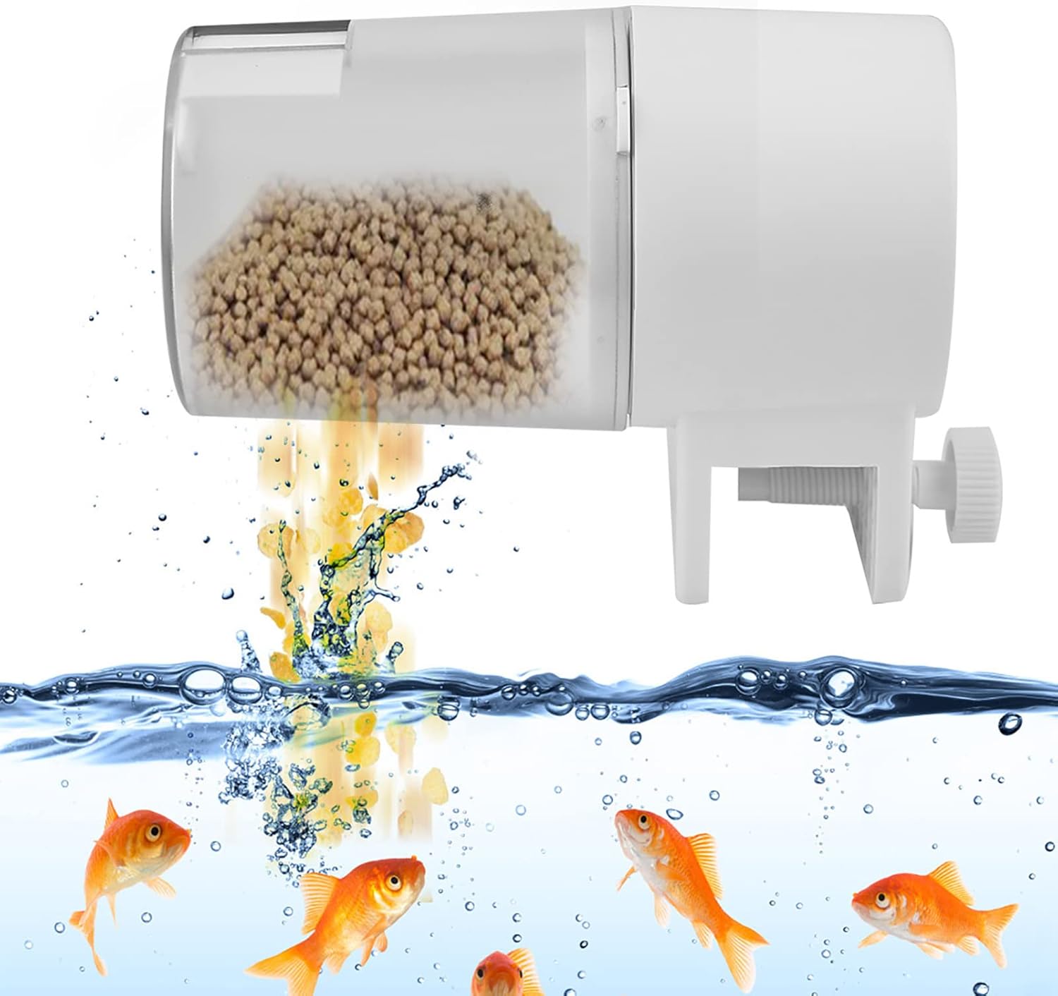 Features:Two feeding time mode.The time setting mode can be once every 12 hours and once every 24 hours.The feeder opening can be set according to the fish species. It is recommended to feed less meals and gradually adjust the reasonable feeding amount to avoid excessive pollution in water.Two different capacity(60g 100g) of food boxes for your different needs.Made from premium material which ensures long lifespan.Ideal for home fish tanks and aquariums. Can feed most of pet fishes, turtles, newts and frogs.Specification:Condition: 100%Brand NewMaterial: PlasticSize(without food box): Approx.5.5*7*10cm / 2.17*2.76*3.94inDiameter for Food Box(S): Approx. 7.5cm / 2.95inLength of Food Box(S): Approx. 5.4cm / 2.13inDiameter for Food Box(L): Approx. 7.5cm / 2.95inLength of Food Box(L): Approx. 7.4cm / 2.91inPower Supply: 2* AA(Not Included)Color: As Shows in PicturesPackage List:1 x Fish Feeder2 x Food Box1 x -proof BoxNotice:1. Please allow 1-3cm error due to manual measurement and make sure you do not mind before ordering.2. Please understand that colors may exist chromatic aberration as the different placement of pictures.3. Please note that the new type and old type of this product will be sent randomly, and make sure you will not mind before ordering.